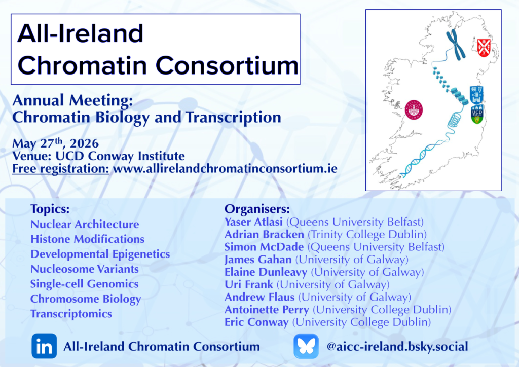 The All Ireland Chromatin Consortium has run an annual one-day meeting to bring together chromatin researchers from across the island of Ireland since 2022.
